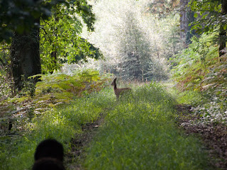 today, unusually, we came across several deer by surprise, probably because the wind was in an unusual direction. This little female roe deer was very slow to notice us and gave me time to take several photographs despite the dogs